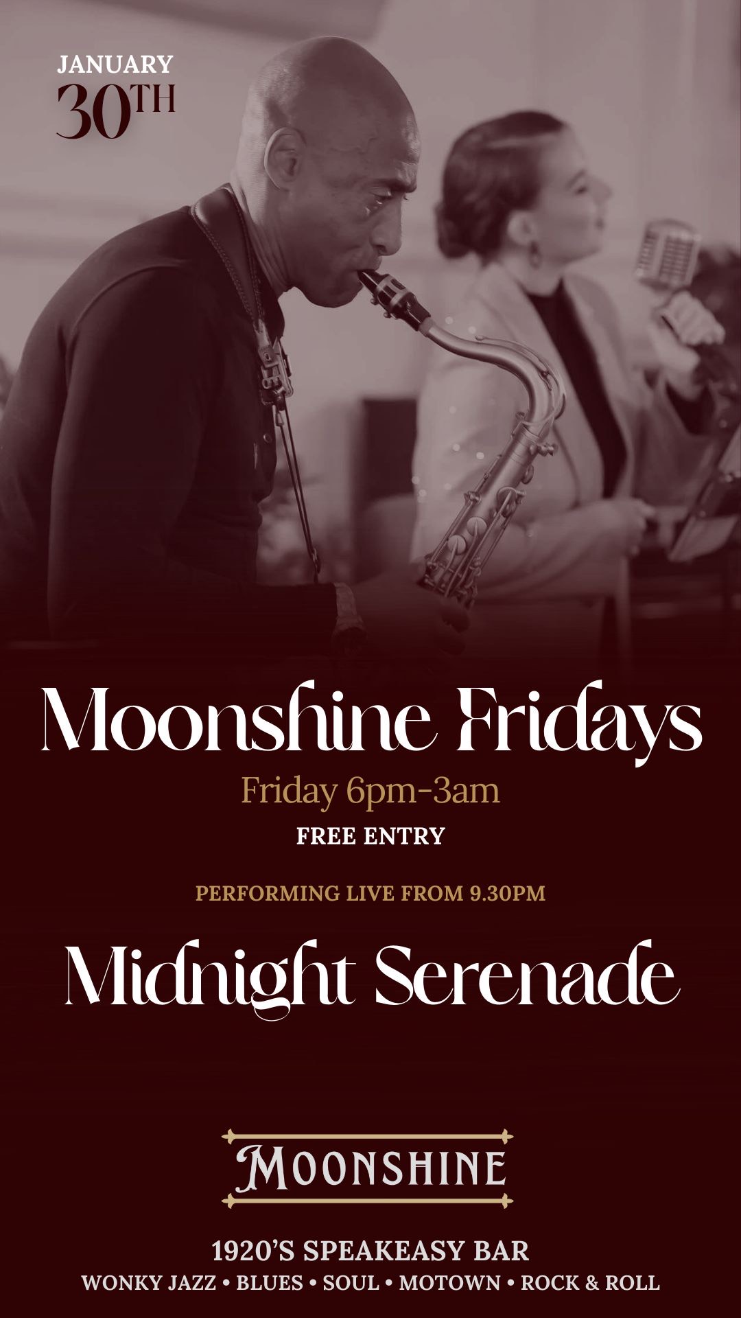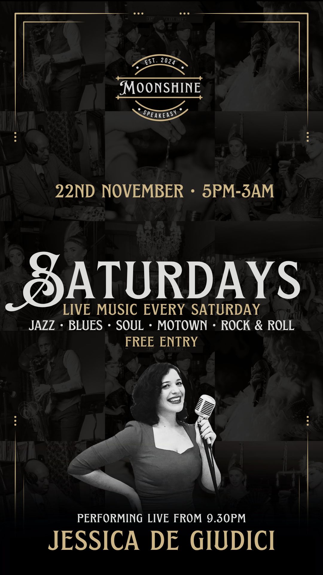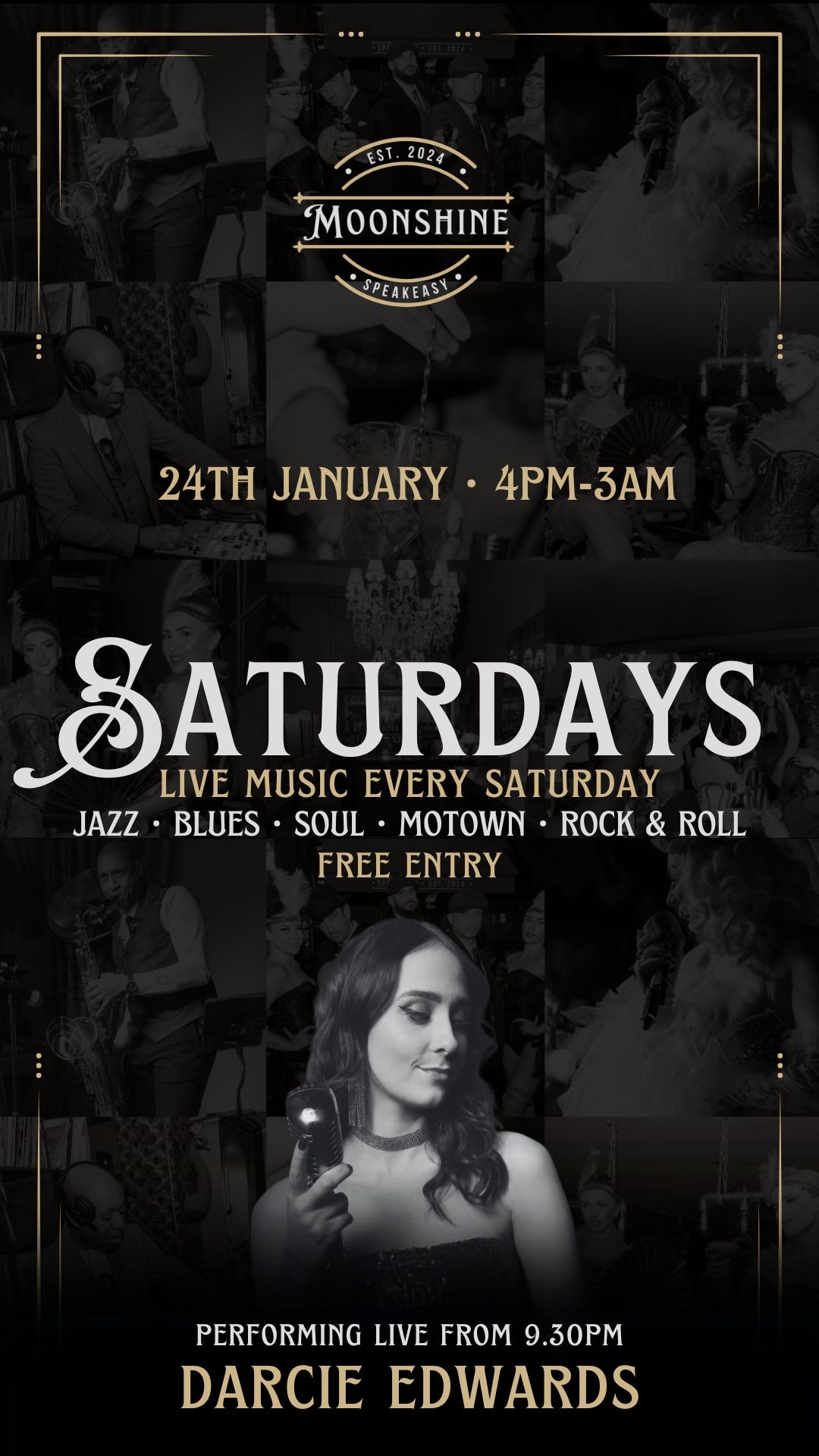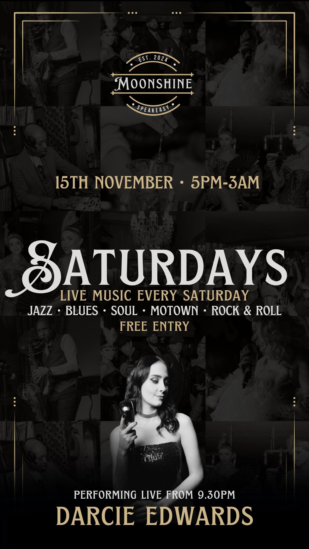 At Moonshine, we pride ourselves on offering an eclectic mix of live performances, featuring wonky jazz, blues, and soul that capture the essence of the Roaring Twenties. Our talented musicians create an atmosphere that transports you to a bygone era, making every visit a memorable experience.