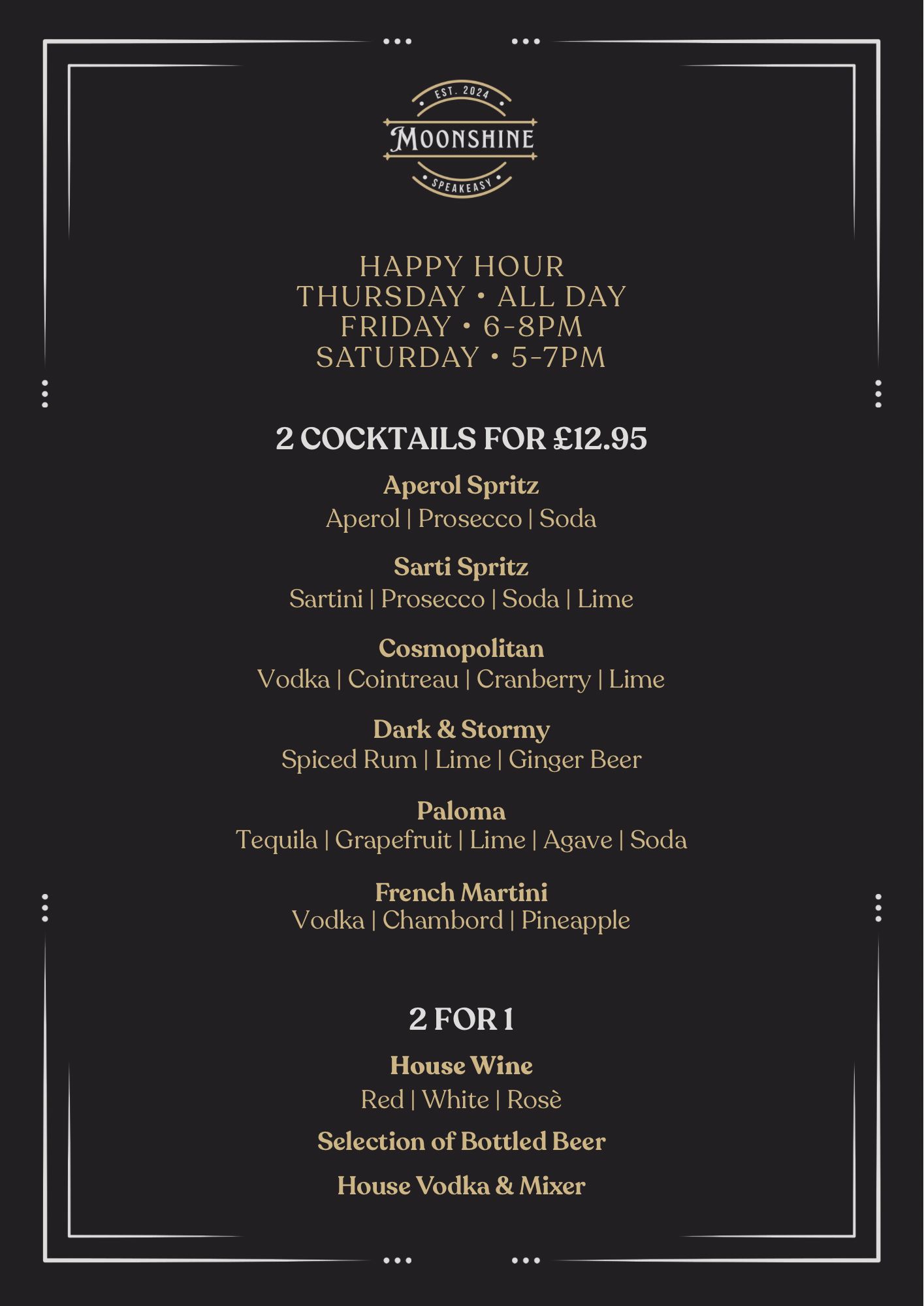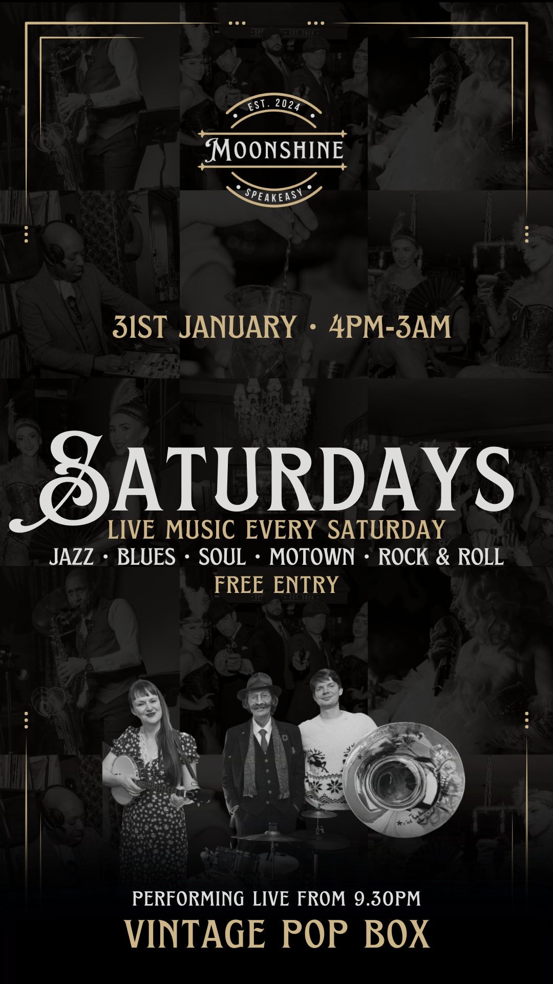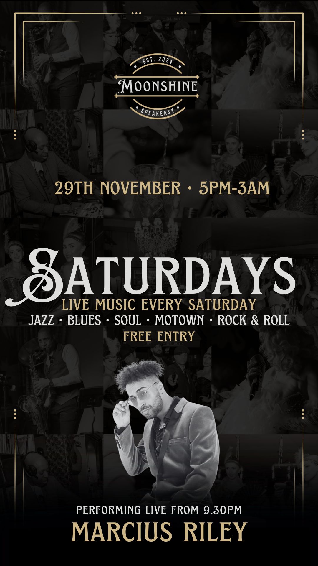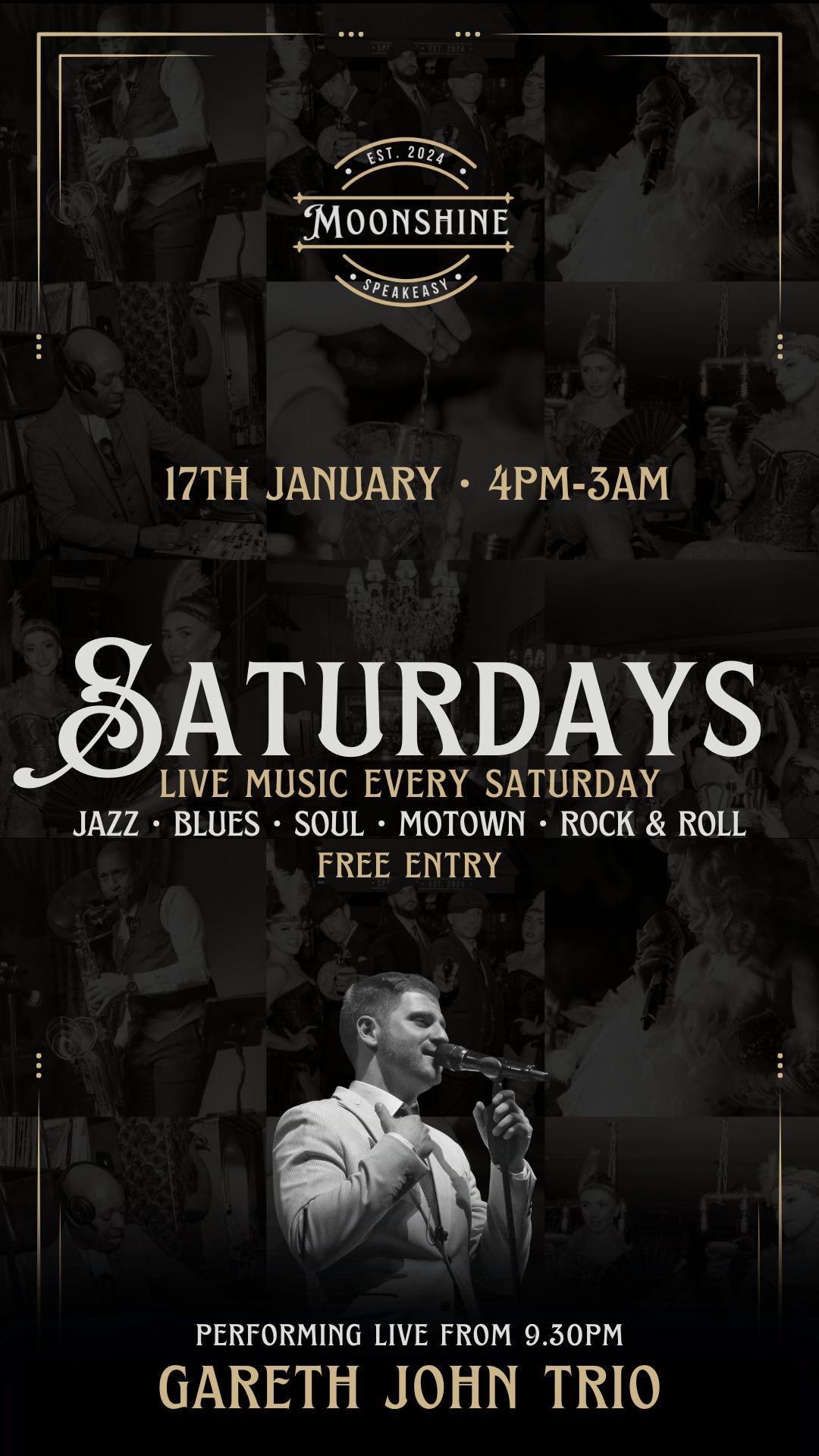 At Moonshine, we pride ourselves on offering an eclectic mix of live performances, featuring wonky jazz, blues, and soul that capture the essence of the Roaring Twenties. Our talented musicians create an atmosphere that transports you to a bygone era, making every visit a memorable experience.